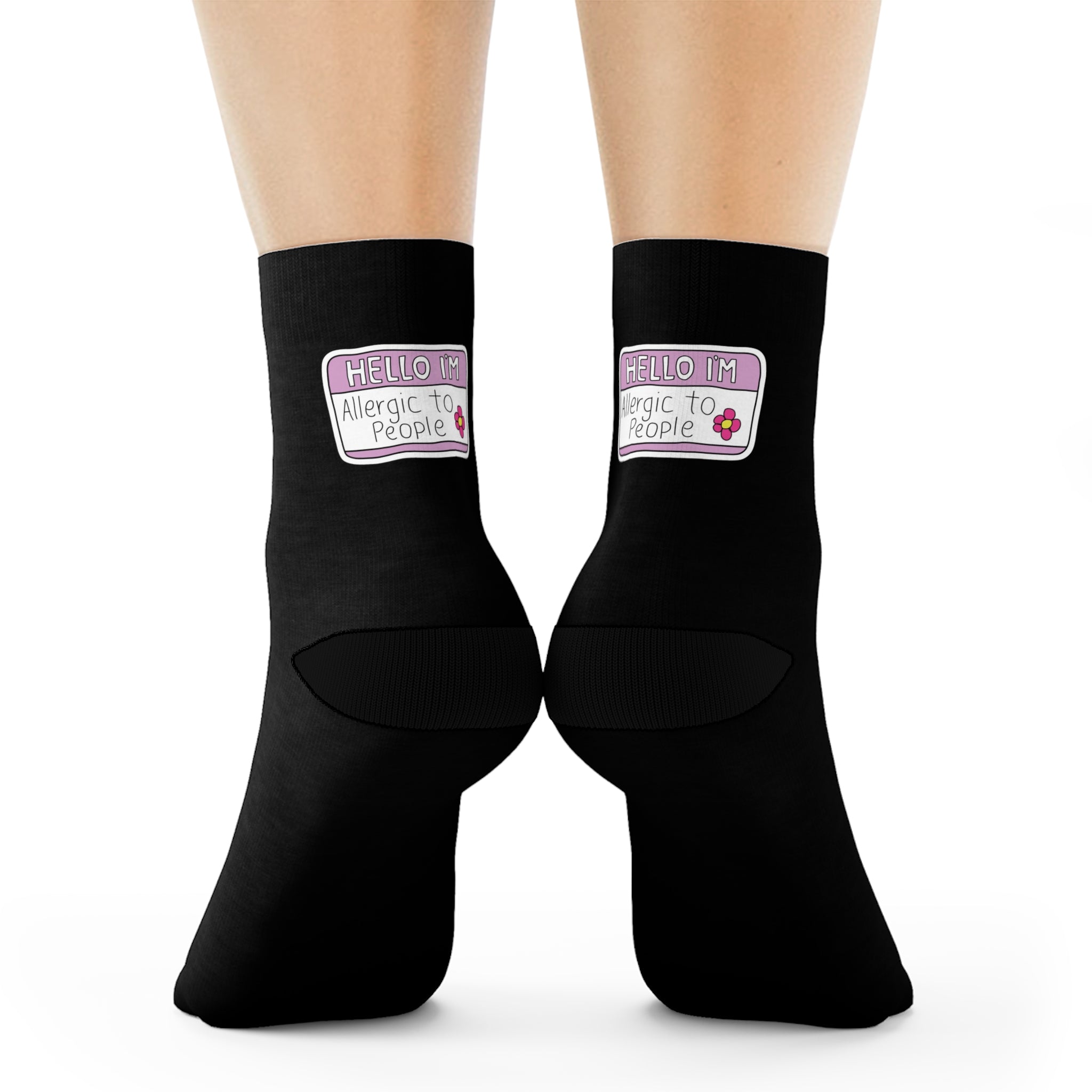 These hilarious “Hello I’m Allergic to People” crew socks are perfect for introverts, antisocial moods, or anyone who loves a good laugh. Made with soft, breathable fabric for all-day wear. Great gift for friends, coworkers , or your sarcastic self.