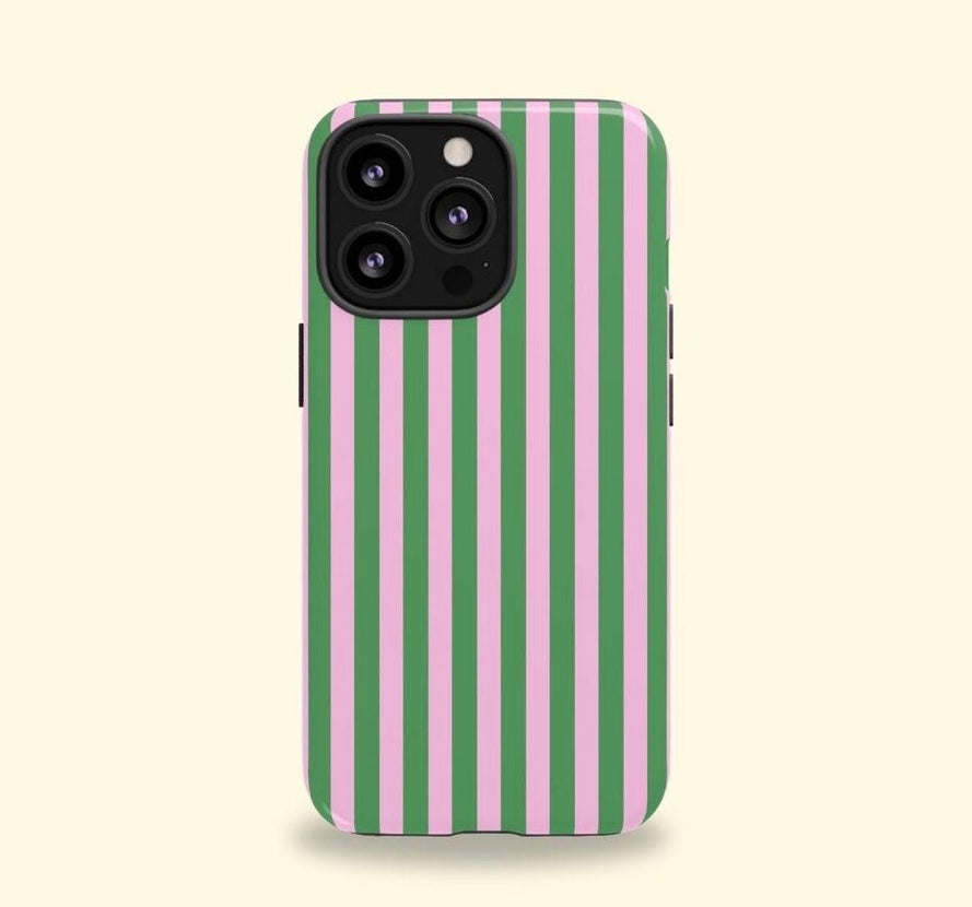 Add a pop of playful color to your phone with this pink and green striped case. Featuring a retro-inspired vertical candy stripe pattern, it brings a bold yet clean look to your everyday style. The sleek, glossy finish offers both protection and personality—perfect for those who love fun, eye-catching accessories with a touch of vintage flair.