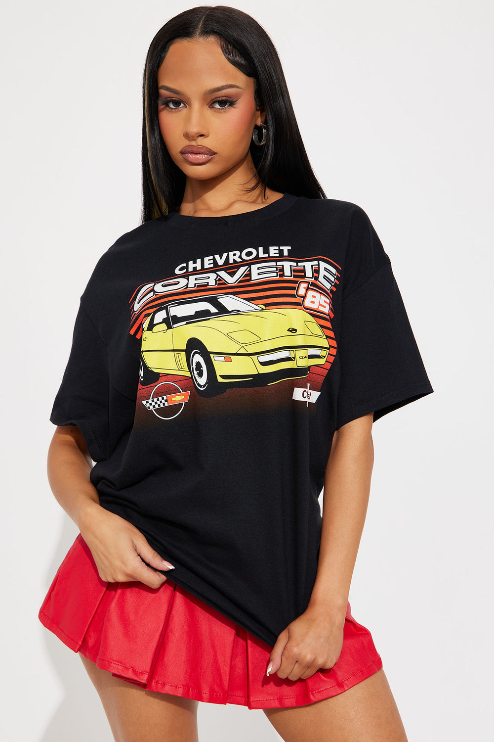 Rev up your wardrobe with this Chevrolet Corvette ’85 graphic T-shirt – a bold, nostalgic tribute to classic car culture. Featuring a vibrant yellow Corvette print with racing details and vintage-style typography, this tee is a must-have for motorsport lovers and streetwear enthusiasts alike.