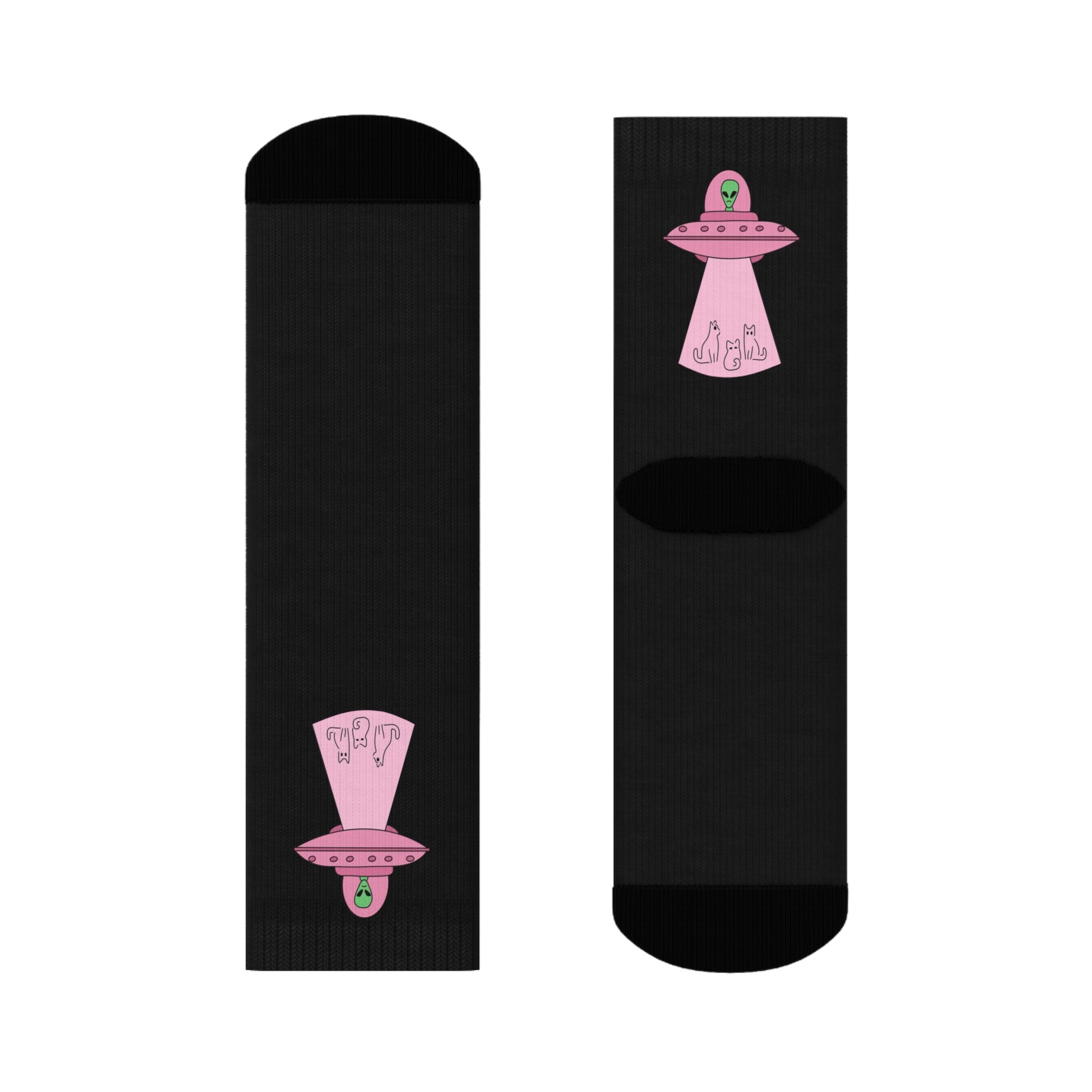 Beam us up, kitty! Our Alien Abduction Cat socks are here to take your style out of this world. Featuring a playful design of UFOs abducting unsuspecting cats, these socks blend cosmic chaos with feline flair—perfect for cat lovers, space nerds, or anyone who enjoys a dash of the bizarre.