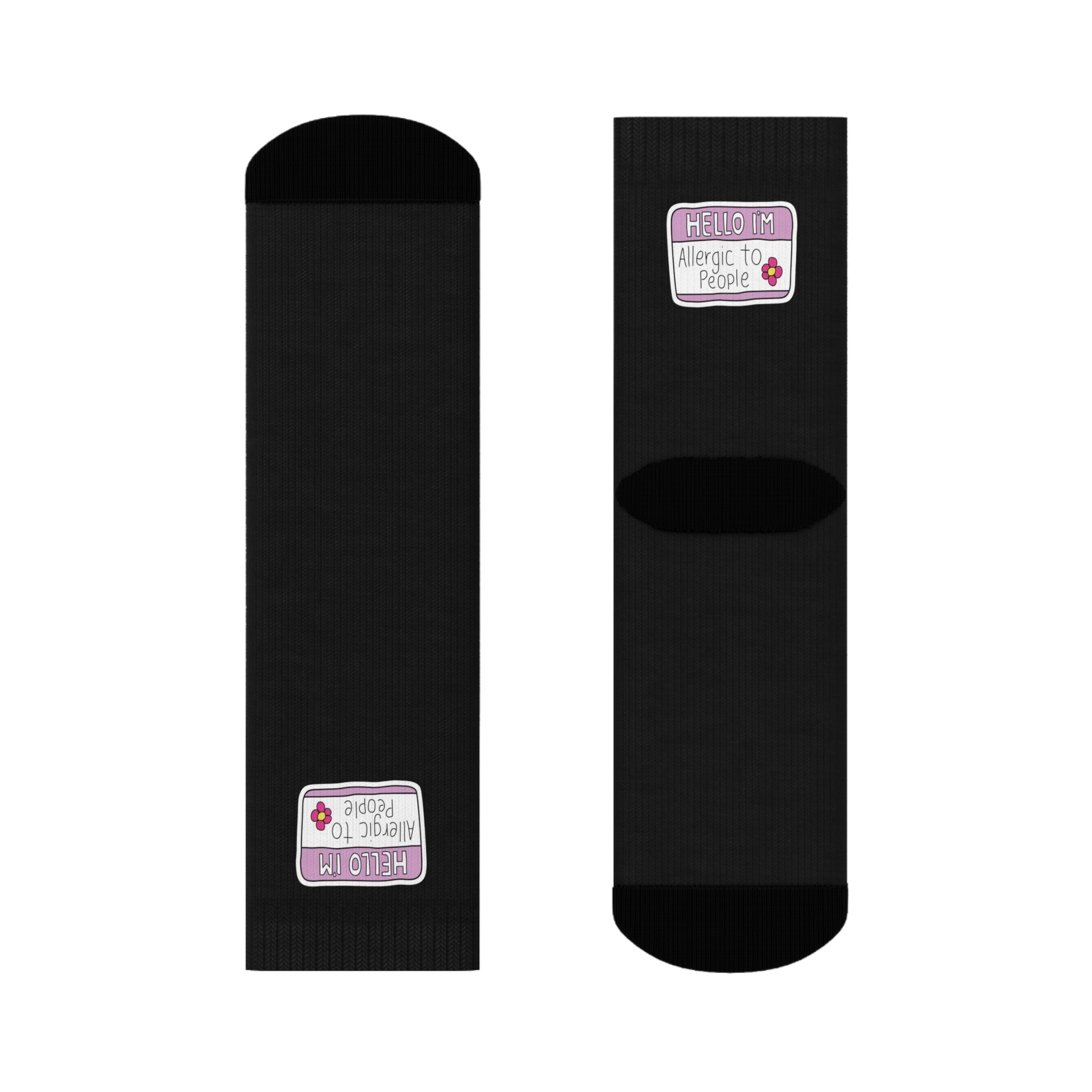 These hilarious “Hello I’m Allergic to People” crew socks are perfect for introverts, antisocial moods, or anyone who loves a good laugh. Made with soft, breathable fabric for all-day wear. Great gift for friends, coworkers , or your sarcastic self.