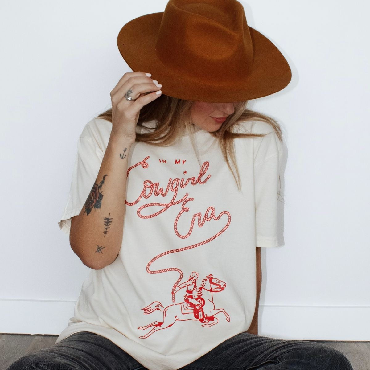 Saddle up for the Cowgirls’ Era – where bold meets beautiful. This oversized graphic T-shirt celebrates the spirit of the modern cowgirl with Western flair and confident energy. Featuring retro fonts, boot-scootin’ vibes, and a touch of yeehaw feminism, it’s perfect for rodeo nights, country concerts, or everyday slay.