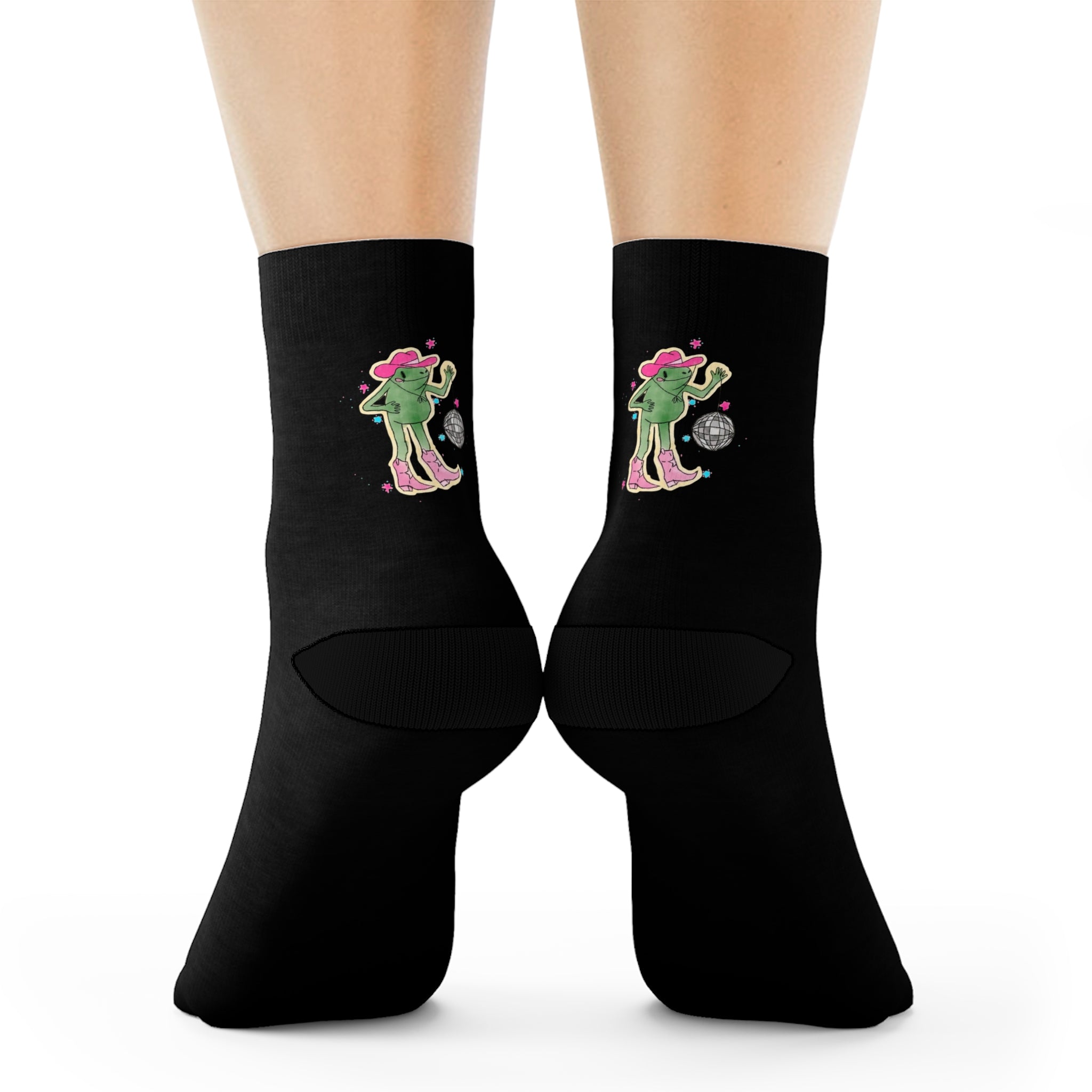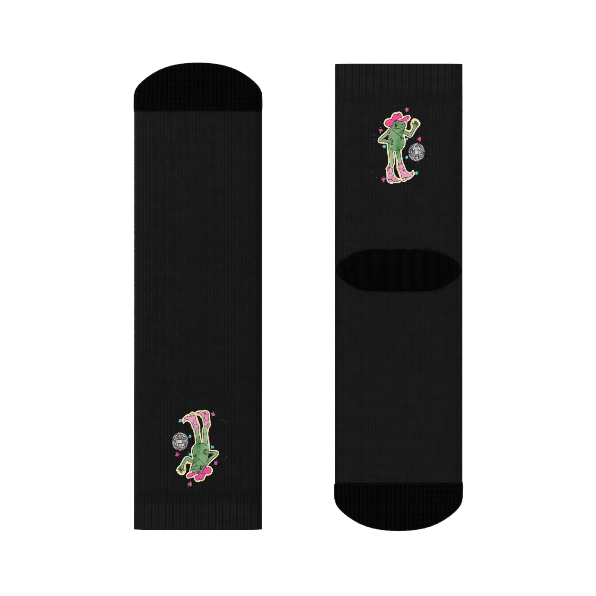 Get ready to boogie with our Funky Disco Frog socks – where retro vibes meet ribbit energy! Featuring a dancing frog with serious disco moves, these socks bring a playful twist to your everyday style. Perfect for anyone who loves to stand out, laugh loud, and keep it groovy from head to toe.
